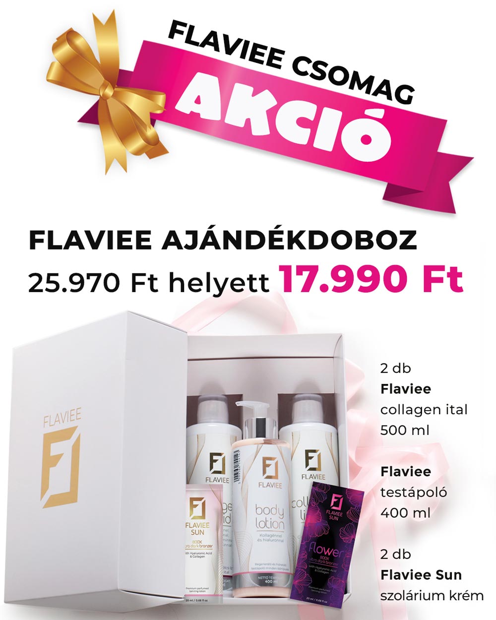 Tartalma: – 2 Flaviee collagen ital 500 ml – Flaviee testápoló 400 ml – 2 db Flaviee Sun szolárium krém